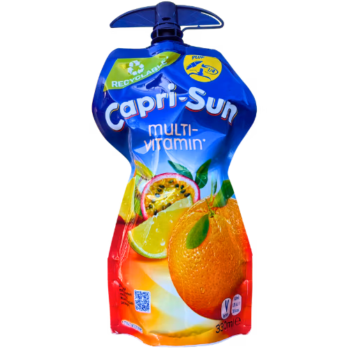 Med Capri-Sun multivitamin 33 cl får du også masser af gode vitaminer, blandt andet B6- C- og E-vitaminer.